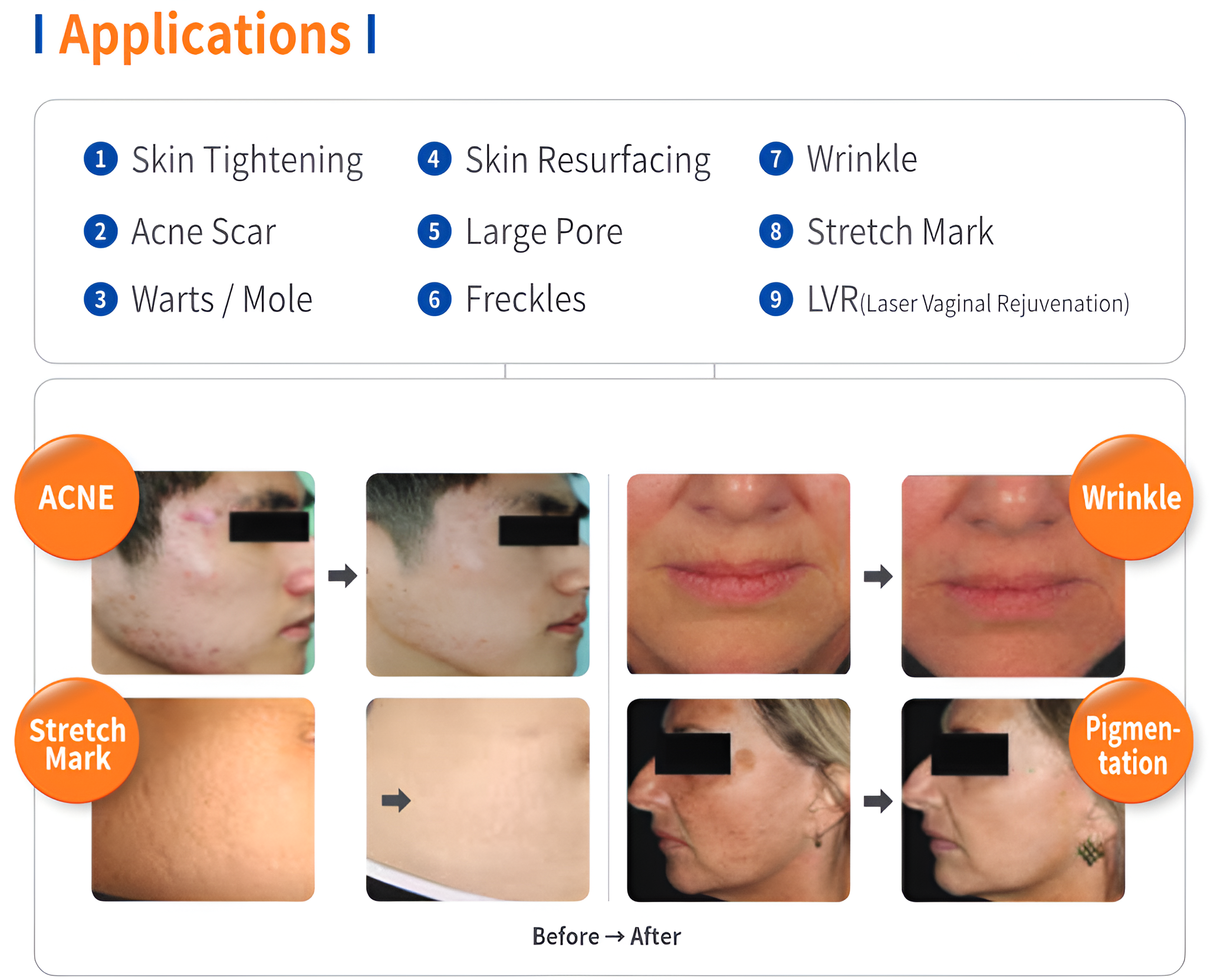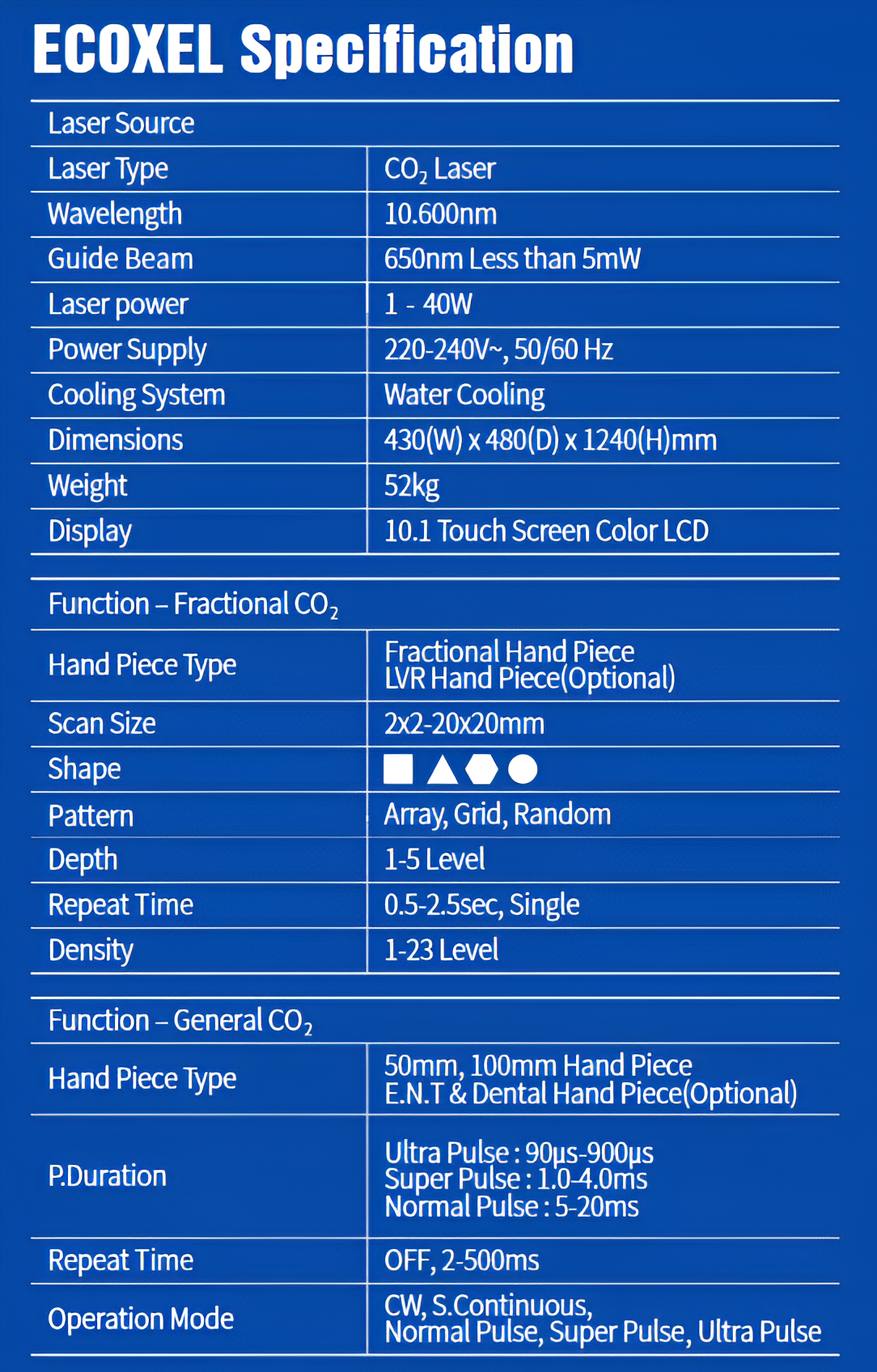 Fractional CO2 laser system for scar treatment, wrinkle reduction, and skin rejuvenation. Patients experience faster recovery
