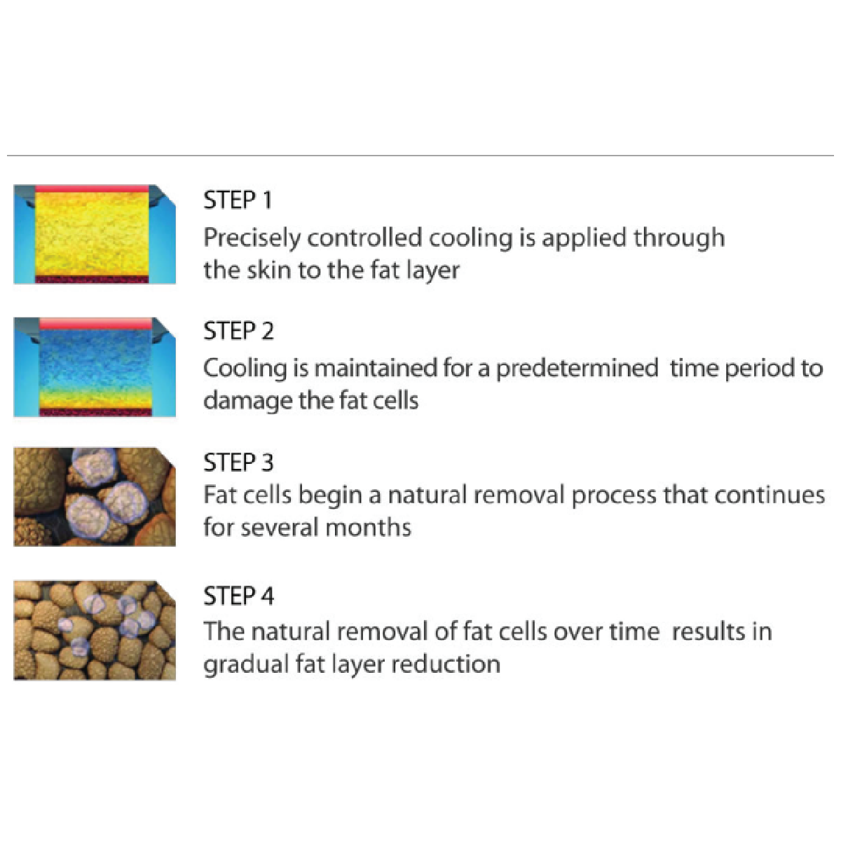 Non-invasive cryolipolysis device targeting and reducing fat cells through controlled cooling technology.