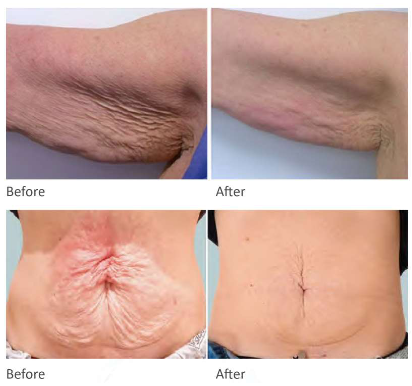 HIFU-powered transducers deliver concentrated waves of ultrasound into multiple layers of skin and body tissues without making direct contact with surrounding areas.